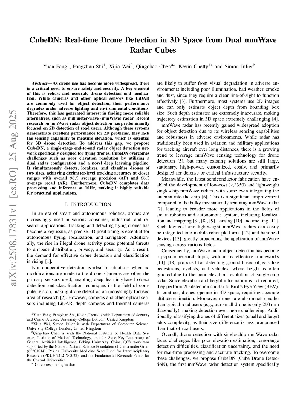 CubeDN: Real-time Drone Detection in 3D Space from Dual mmWave Radar Cubes