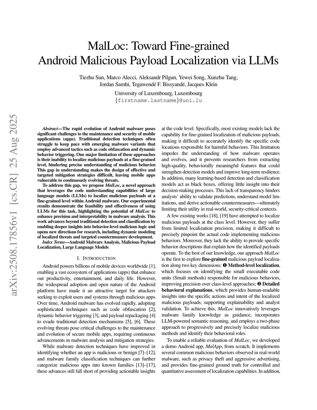 MalLoc: Toward Fine-grained Android Malicious Payload Localization via LLMs