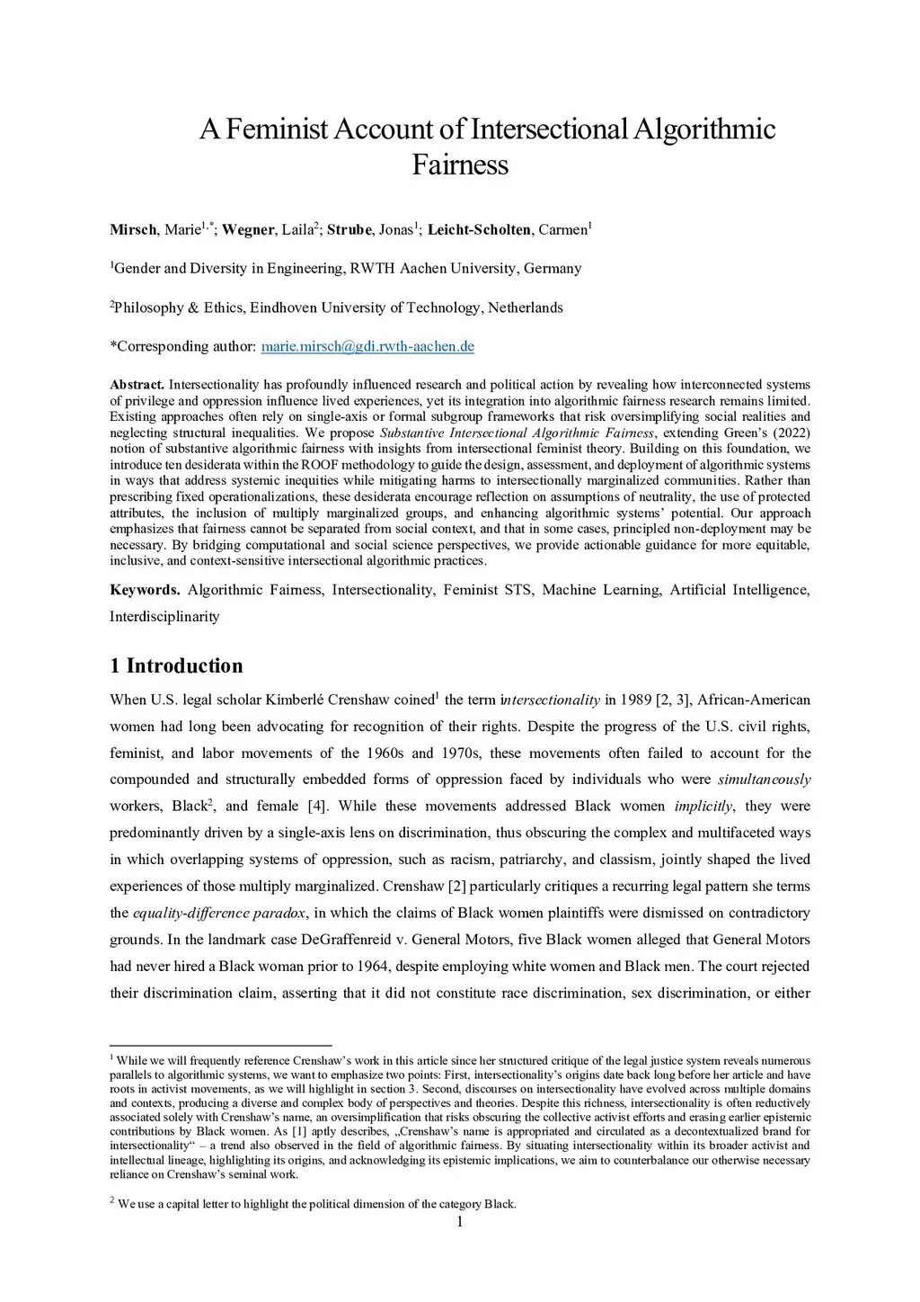 Toward Substantive Intersectional Algorithmic Fairness: Desiderata for a Feminist Approach