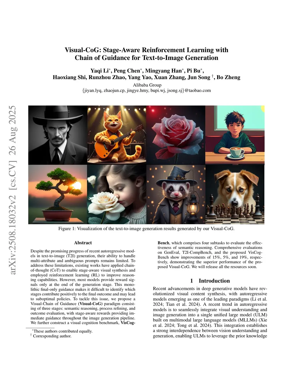 Visual-CoG: Stage-Aware Reinforcement Learning with Chain of Guidance for Text-to-Image Generation