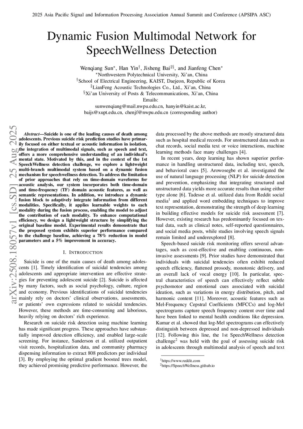 Dynamic Fusion Multimodal Network for SpeechWellness Detection