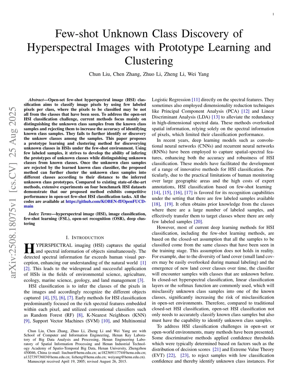 Few-shot Unknown Class Discovery of Hyperspectral Images with Prototype Learning and Clustering