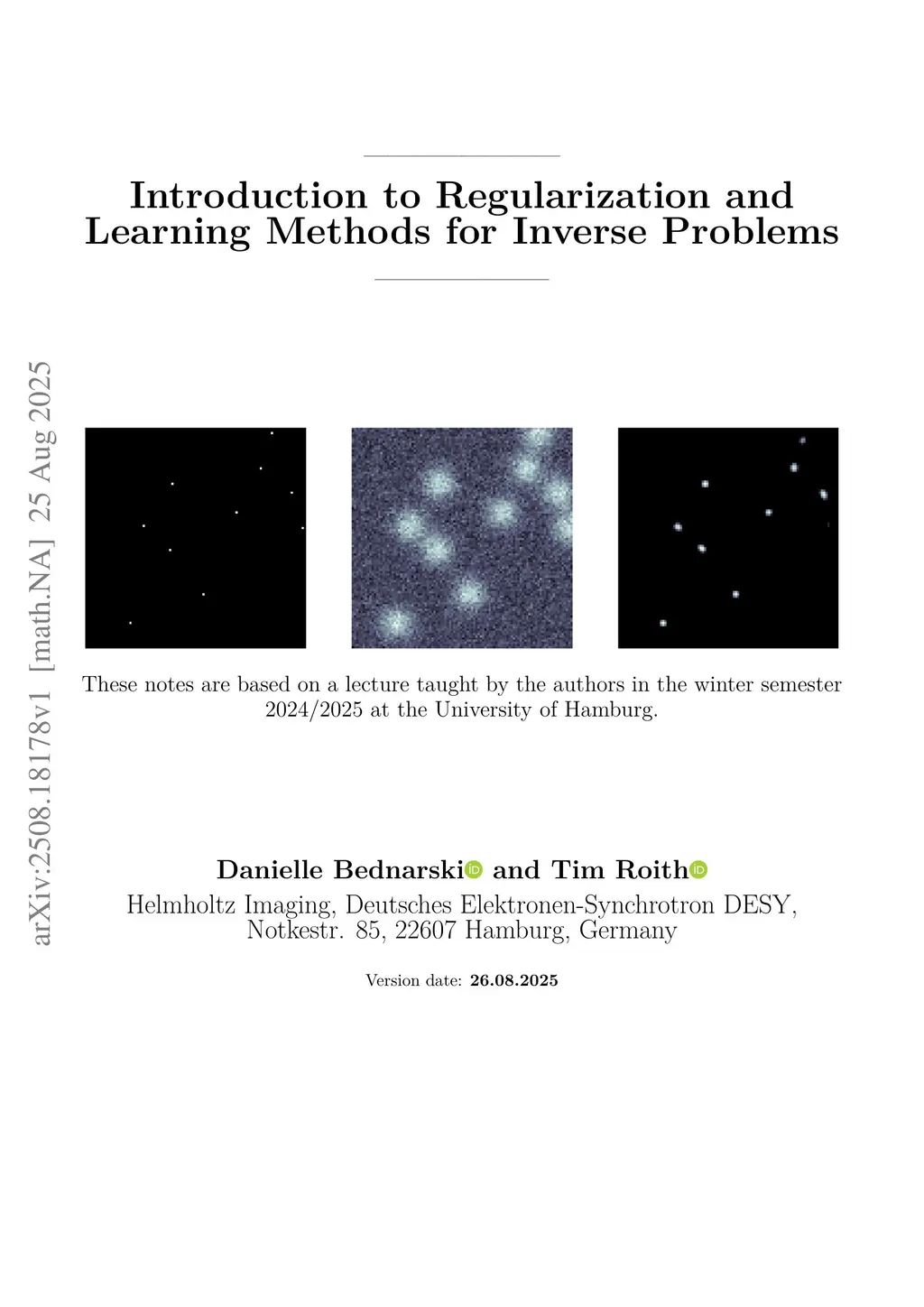 These lecture notes evolve around mathematical concepts arising in inverse problems. We start by introducing inverse problems through examples such as differentiation, deconvolution, computed tomography and phase retrieval. This then leads us to the framework of well-posedness and first considerations regarding reconstruction and inversion approaches. The second chapter then first deals with classical regularization theory of inverse problems in Hilbert spaces. After introducing the pseudo-inverse, we review the concept of convergent regularization. Within this chapter we then proceed to ask the question of how to realize practical reconstruction algorithms. Here, we mainly focus on Tikhonov and sparsity promoting regularization in finite dimensional spaces. In the third chapter, we dive into modern deep-learning methods, which allow solving inverse problems in a data-dependent approach. The intersection between inverse problems and machine learning is a rapidly growing field and our exposition here restricts itself to a very limited selection of topics. Among them are learned regularization, fully-learned Bayesian estimation, post-processing strategies and plug-n-play methods.