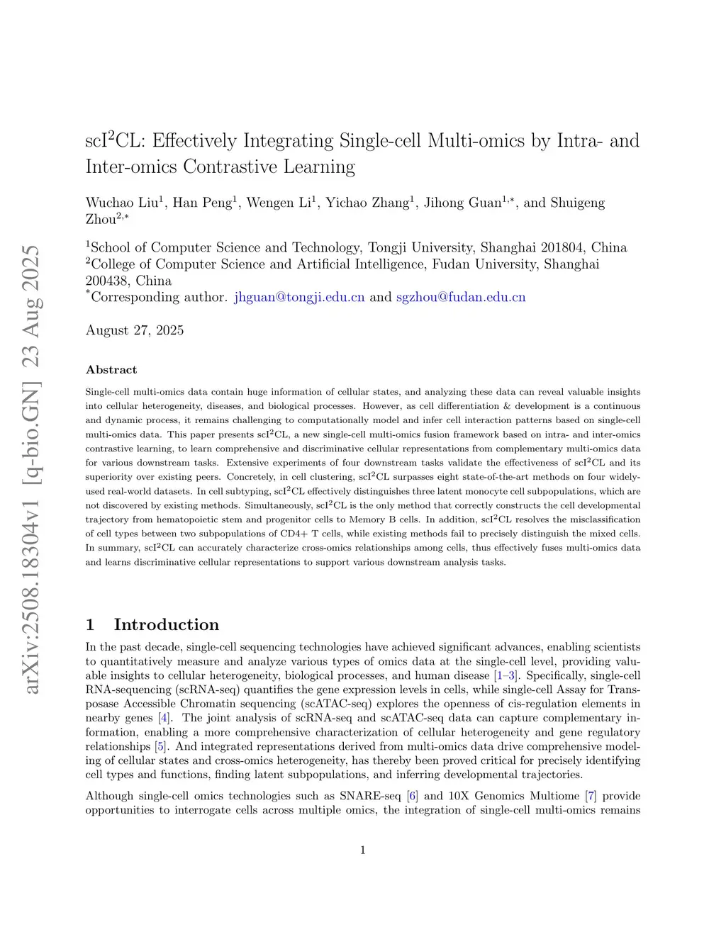 scI2CL: Effectively Integrating Single-cell Multi-omics by Intra- and Inter-omics Contrastive Learning