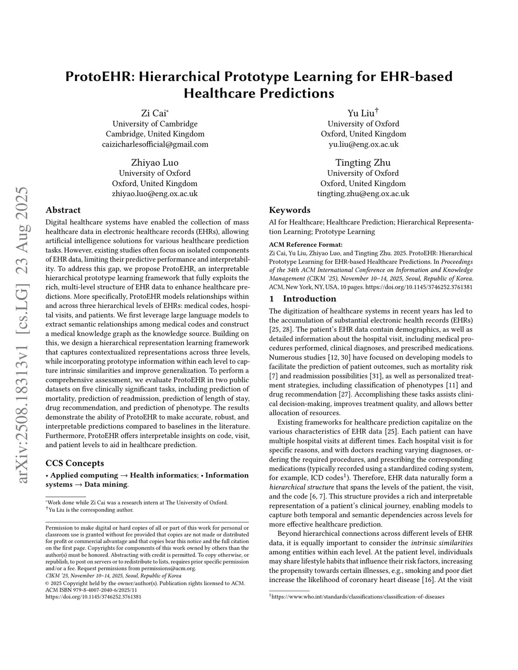 ProtoEHR: Hierarchical Prototype Learning for EHR-based Healthcare Predictions