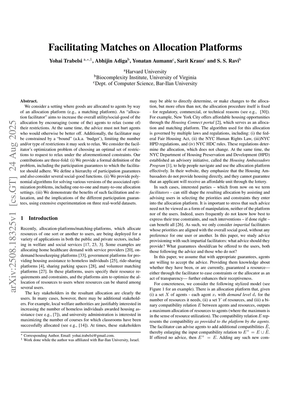 Facilitating Matches on Allocation Platforms