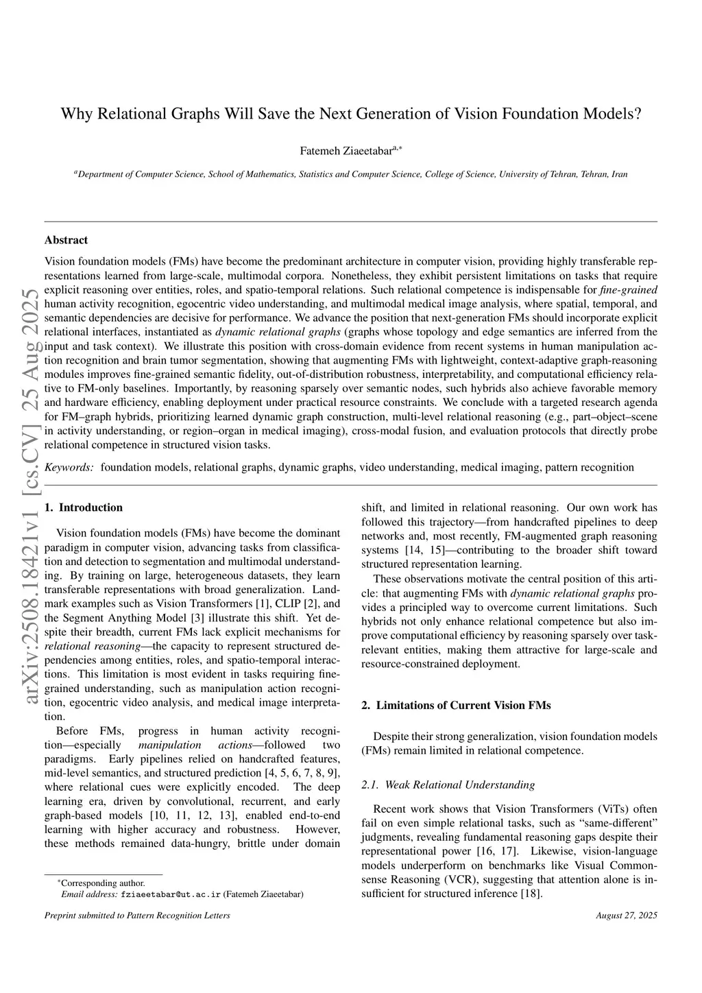 Vision foundation models (FMs) have become the predominant architecture in computer vision, providing highly transferable representations learned from large-scale, multimodal corpora. Nonetheless, they exhibit persistent limitations on tasks that require explicit reasoning over entities, roles, and spatio-temporal relations. Such relational competence is indispensable for fine-grained human activity recognition, egocentric video understanding, and multimodal medical image analysis, where spatial, temporal, and semantic dependencies are decisive for performance. We advance the position that next-generation FMs should incorporate explicit relational interfaces, instantiated as dynamic relational graphs (graphs whose topology and edge semantics are inferred from the input and task context). We illustrate this position with cross-domain evidence from recent systems in human manipulation action recognition and brain tumor segmentation, showing that augmenting FMs with lightweight, context-adaptive graph-reasoning modules improves fine-grained semantic fidelity, out of distribution robustness, interpretability, and computational efficiency relative to FM only baselines. Importantly, by reasoning sparsely over semantic nodes, such hybrids also achieve favorable memory and hardware efficiency, enabling deployment under practical resource constraints. We conclude with a targeted research agenda for FM graph hybrids, prioritizing learned dynamic graph construction, multi-level relational reasoning (e.g., part object scene in activity understanding, or region organ in medical imaging), cross-modal fusion, and evaluation protocols that directly probe relational competence in structured vision tasks.