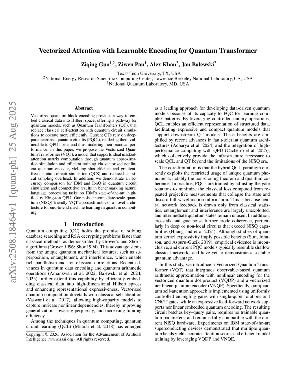Vectorized Attention with Learnable Encoding for Quantum Transformer