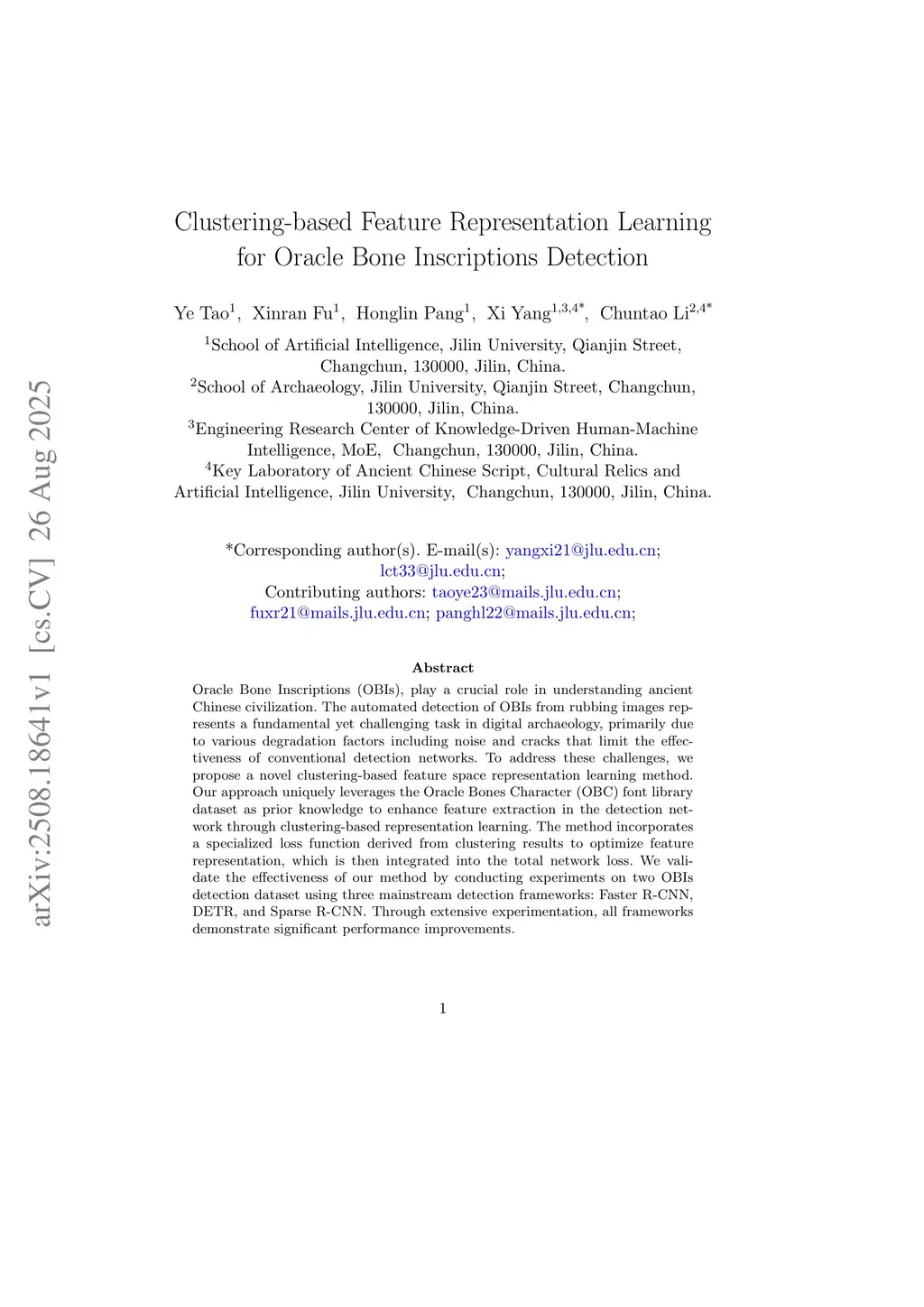 Clustering-based Feature Representation Learning for Oracle Bone Inscriptions Detection