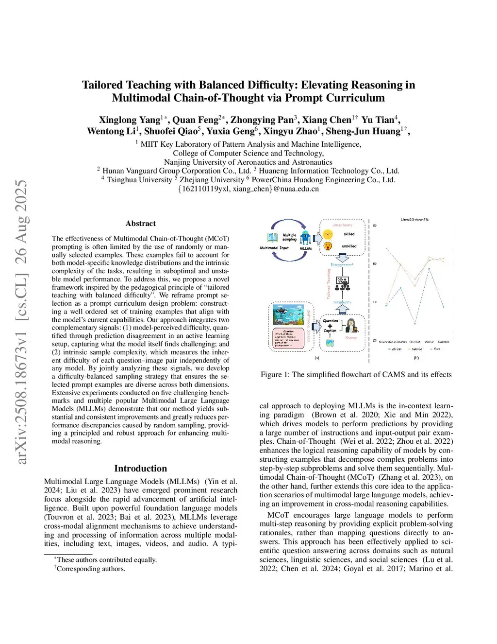 The effectiveness of Multimodal Chain-of-Thought (MCoT) prompting is often limited by the use of randomly or manually selected examples. These examples fail to account for both model-specific knowledge distributions and the intrinsic complexity of the tasks, resulting in suboptimal and unstable model performance. To address this, we propose a novel framework inspired by the pedagogical principle of "tailored teaching with balanced difficulty". We reframe prompt selection as a prompt curriculum design problem: constructing a well ordered set of training examples that align with the model's current capabilities. Our approach integrates two complementary signals: (1) model-perceived difficulty, quantified through prediction disagreement in an active learning setup, capturing what the model itself finds challenging; and (2) intrinsic sample complexity, which measures the inherent difficulty of each question-image pair independently of any model. By jointly analyzing these signals, we develop a difficulty-balanced sampling strategy that ensures the selected prompt examples are diverse across both dimensions. Extensive experiments conducted on five challenging benchmarks and multiple popular Multimodal Large Language Models (MLLMs) demonstrate that our method yields substantial and consistent improvements and greatly reduces performance discrepancies caused by random sampling, providing a principled and robust approach for enhancing multimodal reasoning.