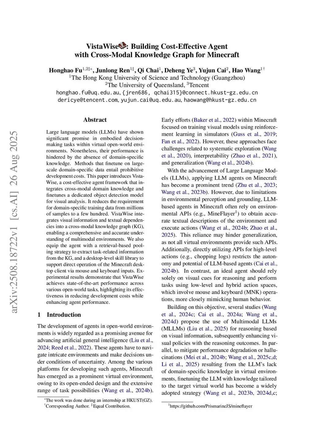 VistaWise: Building Cost-Effective Agent with Cross-Modal Knowledge Graph for Minecraft