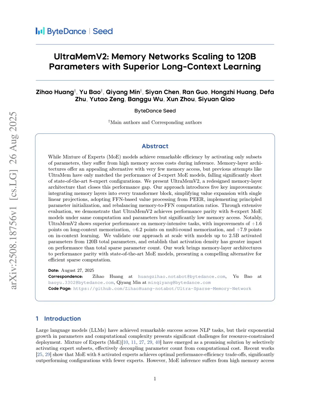 UltraMemV2: Memory Networks Scaling to 120B Parameters with Superior Long-Context Learning