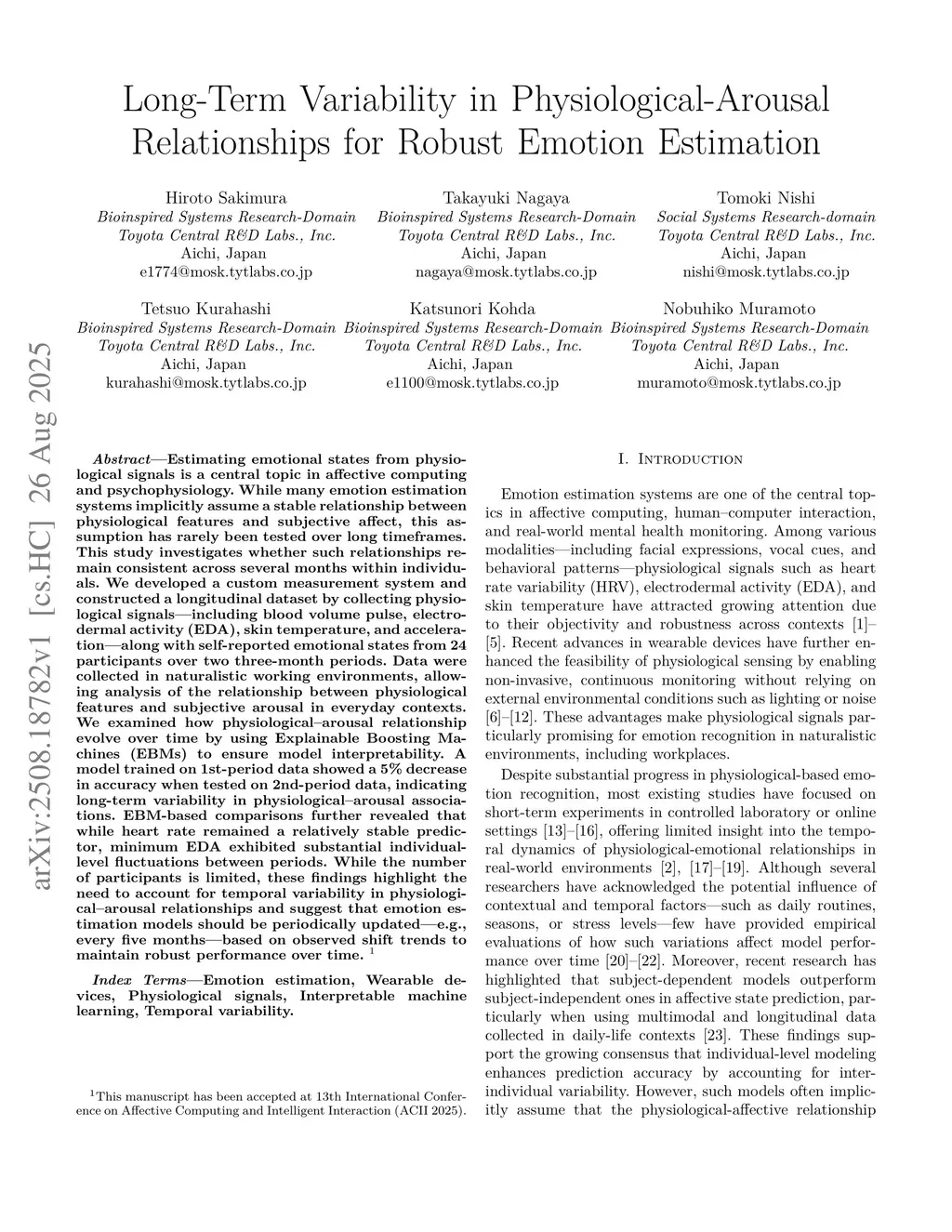 Long-Term Variability in Physiological-Arousal Relationships for Robust Emotion Estimation