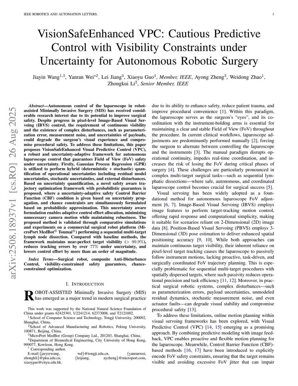 VisionSafeEnhanced VPC: Cautious Predictive Control with Visibility Constraints under Uncertainty for Autonomous Robotic Surgery