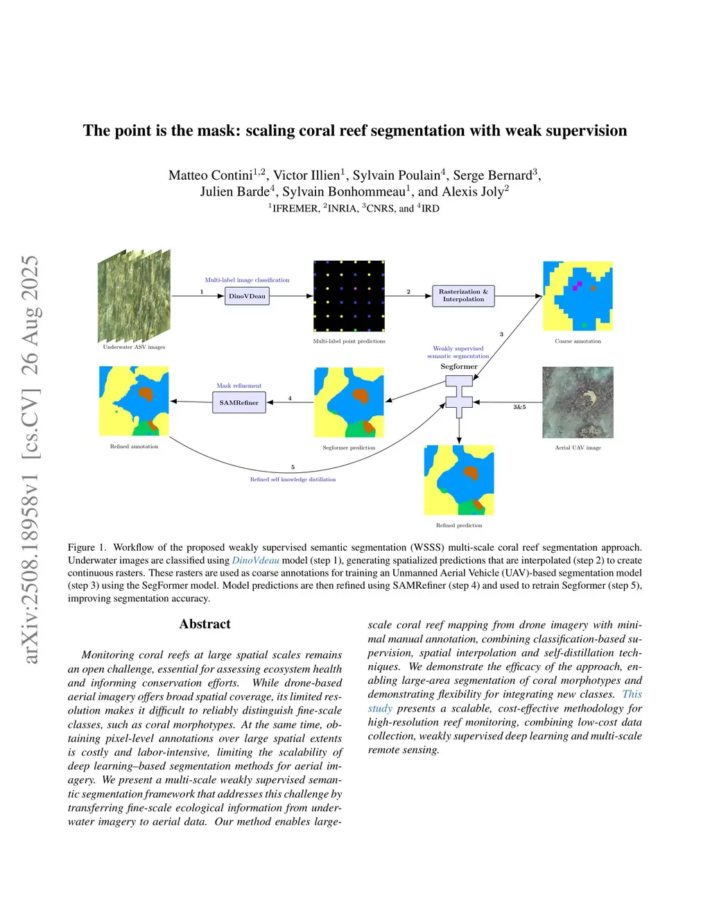 The point is the mask: scaling coral reef segmentation with weak supervision
