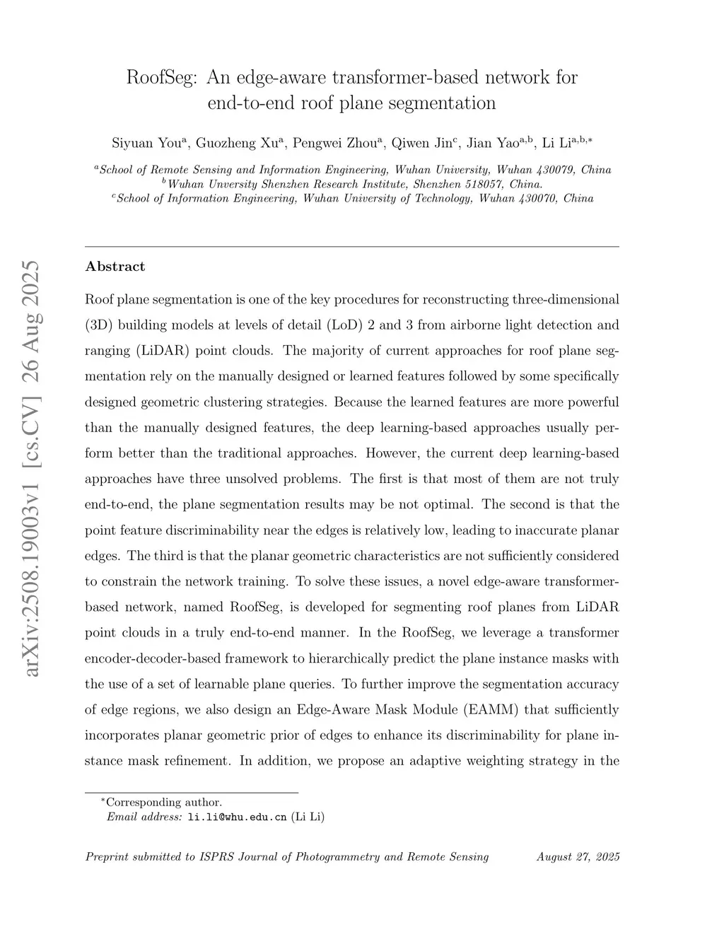 RoofSeg: An edge-aware transformer-based network for end-to-end roof plane segmentation