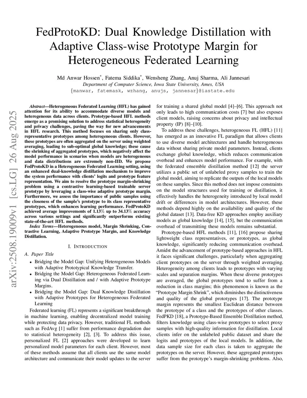 Heterogeneous Federated Learning (HFL) has gained attention for its ability to accommodate diverse models and heterogeneous data across clients. Prototype-based HFL methods emerge as a promising solution to address statistical heterogeneity and privacy challenges, paving the way for new advancements in HFL research. This method focuses on sharing only class-representative prototypes among heterogeneous clients. However, these prototypes are often aggregated on the server using weighted averaging, leading to sub-optimal global knowledge; these cause the shrinking of aggregated prototypes, which negatively affects the model performance in scenarios when models are heterogeneous and data distributions are extremely non-IID. We propose FedProtoKD in a Heterogeneous Federated Learning setting, using an enhanced dual-knowledge distillation mechanism to improve the system performance with clients' logits and prototype feature representation. We aim to resolve the prototype margin-shrinking problem using a contrastive learning-based trainable server prototype by leveraging a class-wise adaptive prototype margin. Furthermore, we assess the importance of public samples using the closeness of the sample's prototype to its class representative prototypes, which enhances learning performance. FedProtoKD achieved average improvements of 1.13% up to 34.13% accuracy across various settings and significantly outperforms existing state-of-the-art HFL methods.
