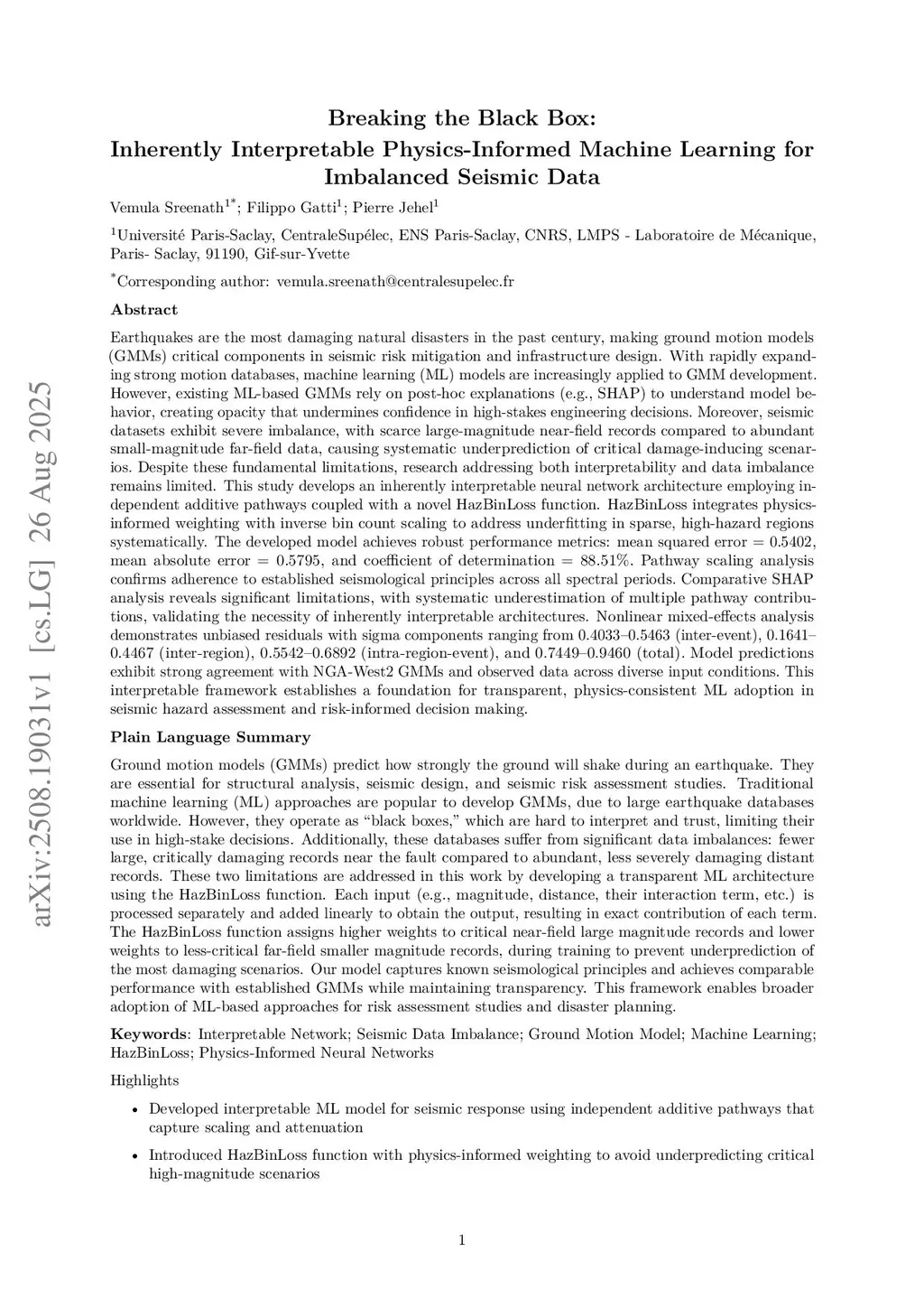 Breaking the Black Box: Inherently Interpretable Physics-Informed Machine Learning for Imbalanced Seismic Data