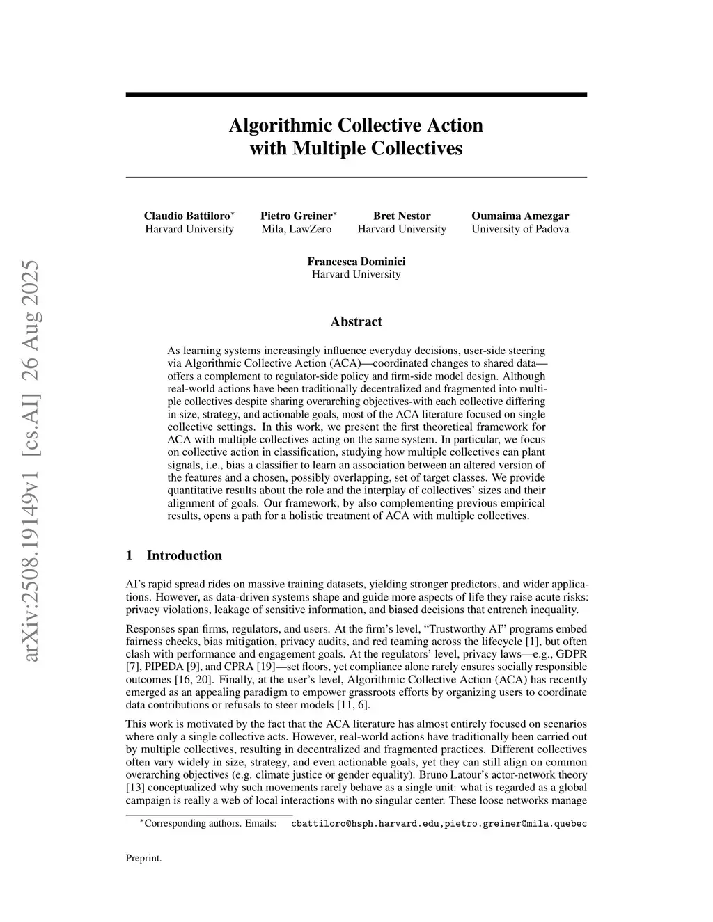 As learning systems increasingly influence everyday decisions, user-side steering via Algorithmic Collective Action (ACA)-coordinated changes to shared data-offers a complement to regulator-side policy and firm-side model design. Although real-world actions have been traditionally decentralized and fragmented into multiple collectives despite sharing overarching objectives-with each collective differing in size, strategy, and actionable goals, most of the ACA literature focused on single collective settings. In this work, we present the first theoretical framework for ACA with multiple collectives acting on the same system. In particular, we focus on collective action in classification, studying how multiple collectives can plant signals, i.e., bias a classifier to learn an association between an altered version of the features and a chosen, possibly overlapping, set of target classes. We provide quantitative results about the role and the interplay of collectives' sizes and their alignment of goals. Our framework, by also complementing previous empirical results, opens a path for a holistic treatment of ACA with multiple collectives.