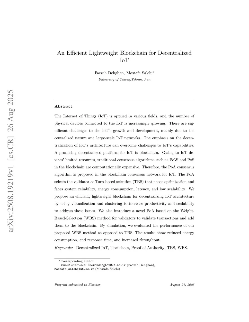 An Efficient Lightweight Blockchain for Decentralized IoT