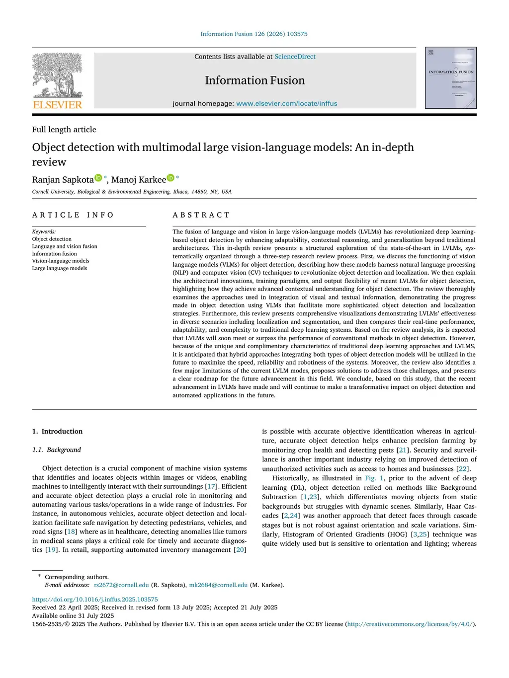 The fusion of language and vision in large vision-language models (LVLMs) has revolutionized deep learning-based object detection by enhancing adaptability, contextual reasoning, and generalization beyond traditional architectures. This in-depth review presents a structured exploration of the state-of-the-art in LVLMs, systematically organized through a three-step research review process. First, we discuss the functioning of vision language models (VLMs) for object detection, describing how these models harness natural language processing (NLP) and computer vision (CV) techniques to revolutionize object detection and localization. We then explain the architectural innovations, training paradigms, and output flexibility of recent LVLMs for object detection, highlighting how they achieve advanced contextual understanding for object detection. The review thoroughly examines the approaches used in integration of visual and textual information, demonstrating the progress made in object detection using VLMs that facilitate more sophisticated object detection and localization strategies. This review presents comprehensive visualizations demonstrating LVLMs' effectiveness in diverse scenarios including localization and segmentation, and then compares their real-time performance, adaptability, and complexity to traditional deep learning systems. Based on the review, its is expected that LVLMs will soon meet or surpass the performance of conventional methods in object detection. The review also identifies a few major limitations of the current LVLM modes, proposes solutions to address those challenges, and presents a clear roadmap for the future advancement in this field. We conclude, based on this study, that the recent advancement in LVLMs have made and will continue to make a transformative impact on object detection and robotic applications in the future.