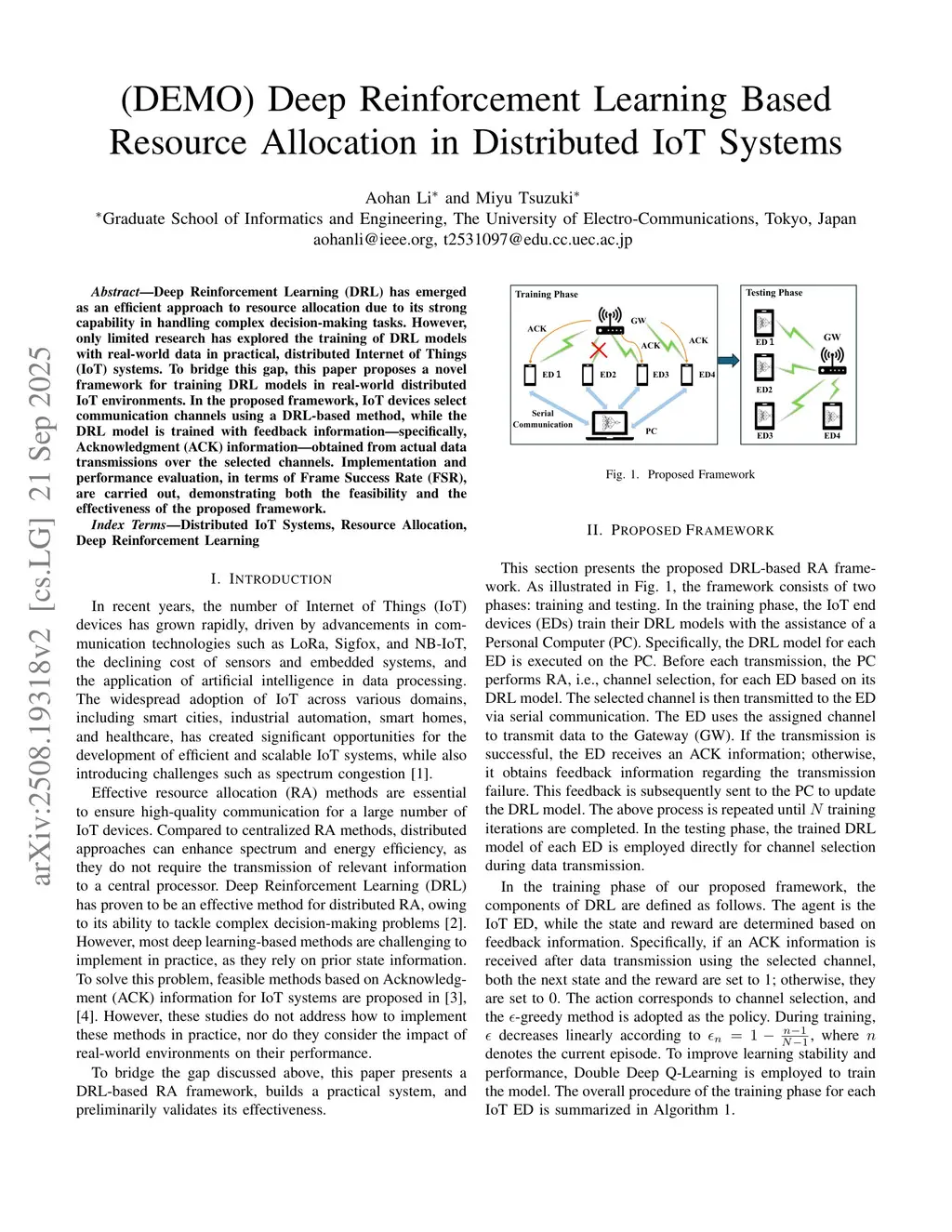 (DEMO) Deep Reinforcement Learning Based Resource Allocation in Distributed IoT Systems