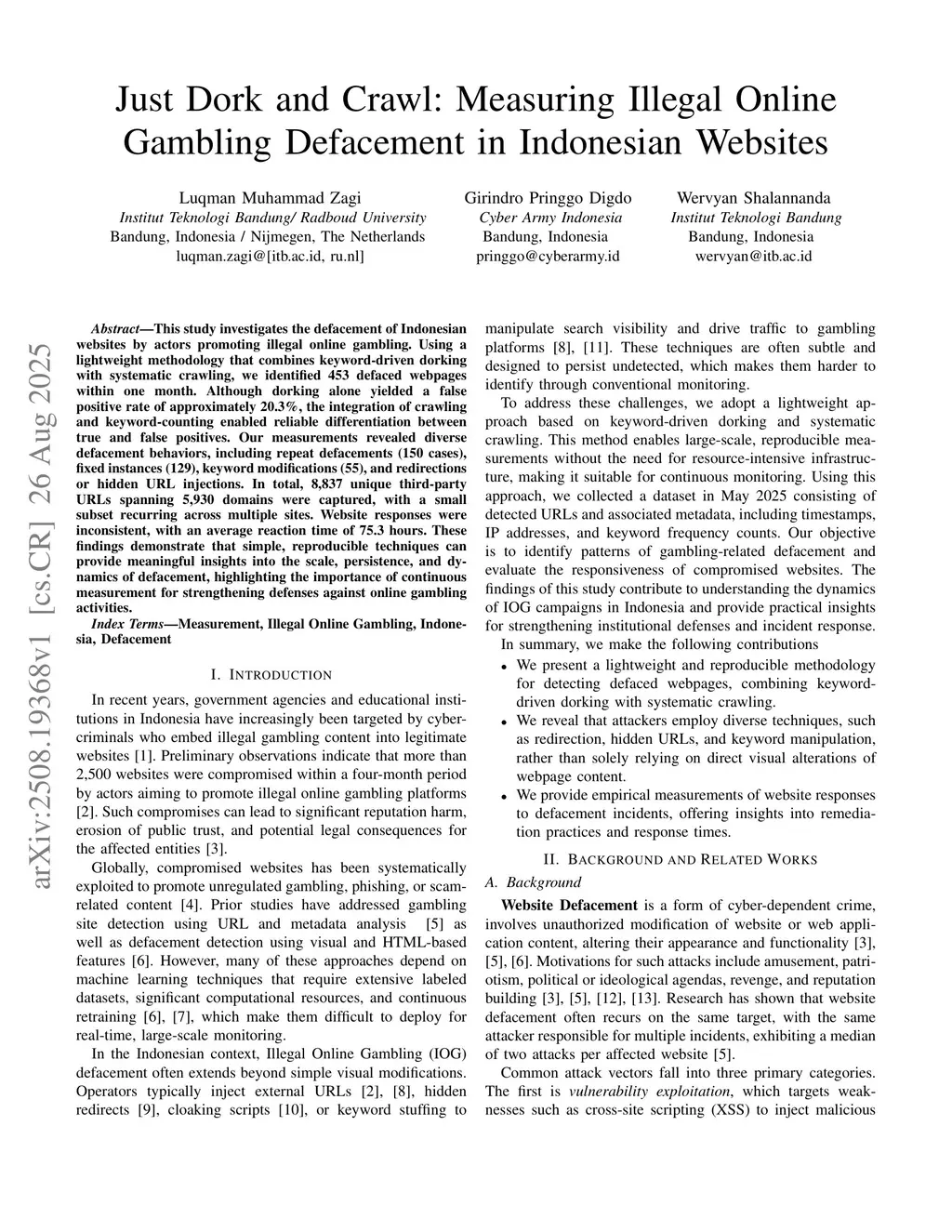 Just Dork and Crawl: Measuring Illegal Online Gambling Defacement in Indonesian Websites