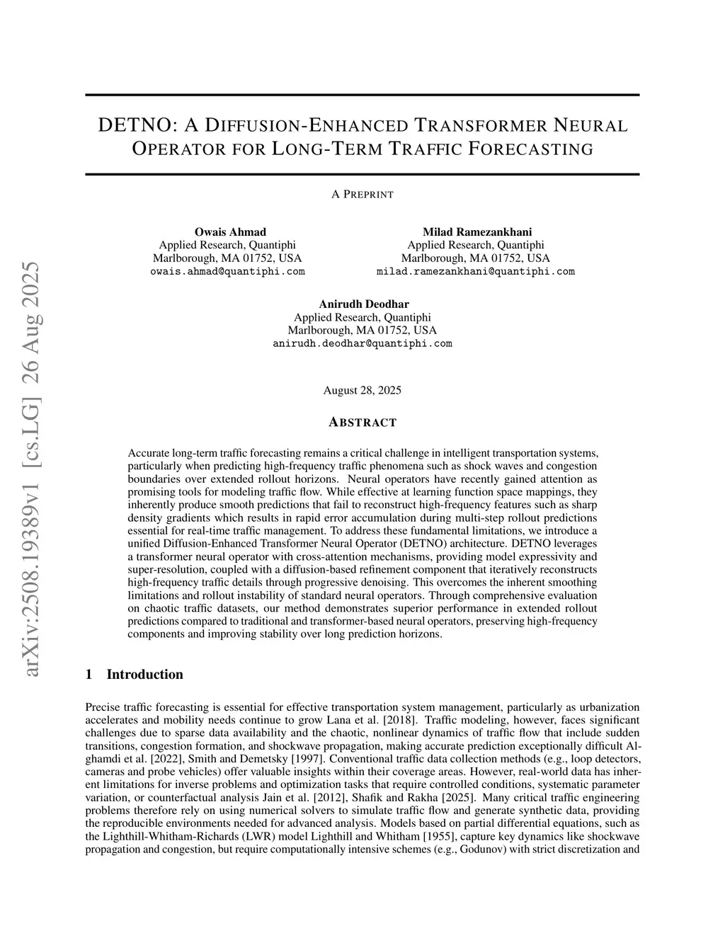 DETNO: A Diffusion-Enhanced Transformer Neural Operator for Long-Term Traffic Forecasting