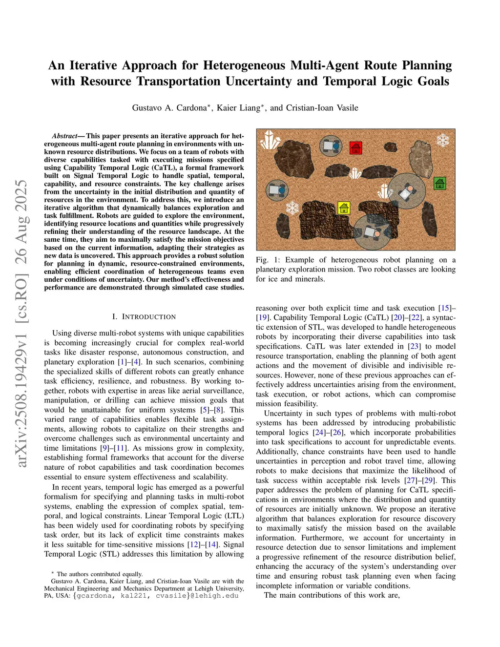 This paper presents an iterative approach for heterogeneous multi-agent route planning in environments with unknown resource distributions. We focus on a team of robots with diverse capabilities tasked with executing missions specified using Capability Temporal Logic (CaTL), a formal framework built on Signal Temporal Logic to handle spatial, temporal, capability, and resource constraints. The key challenge arises from the uncertainty in the initial distribution and quantity of resources in the environment. To address this, we introduce an iterative algorithm that dynamically balances exploration and task fulfillment. Robots are guided to explore the environment, identifying resource locations and quantities while progressively refining their understanding of the resource landscape. At the same time, they aim to maximally satisfy the mission objectives based on the current information, adapting their strategies as new data is uncovered. This approach provides a robust solution for planning in dynamic, resource-constrained environments, enabling efficient coordination of heterogeneous teams even under conditions of uncertainty. Our method's effectiveness and performance are demonstrated through simulated case studies.
