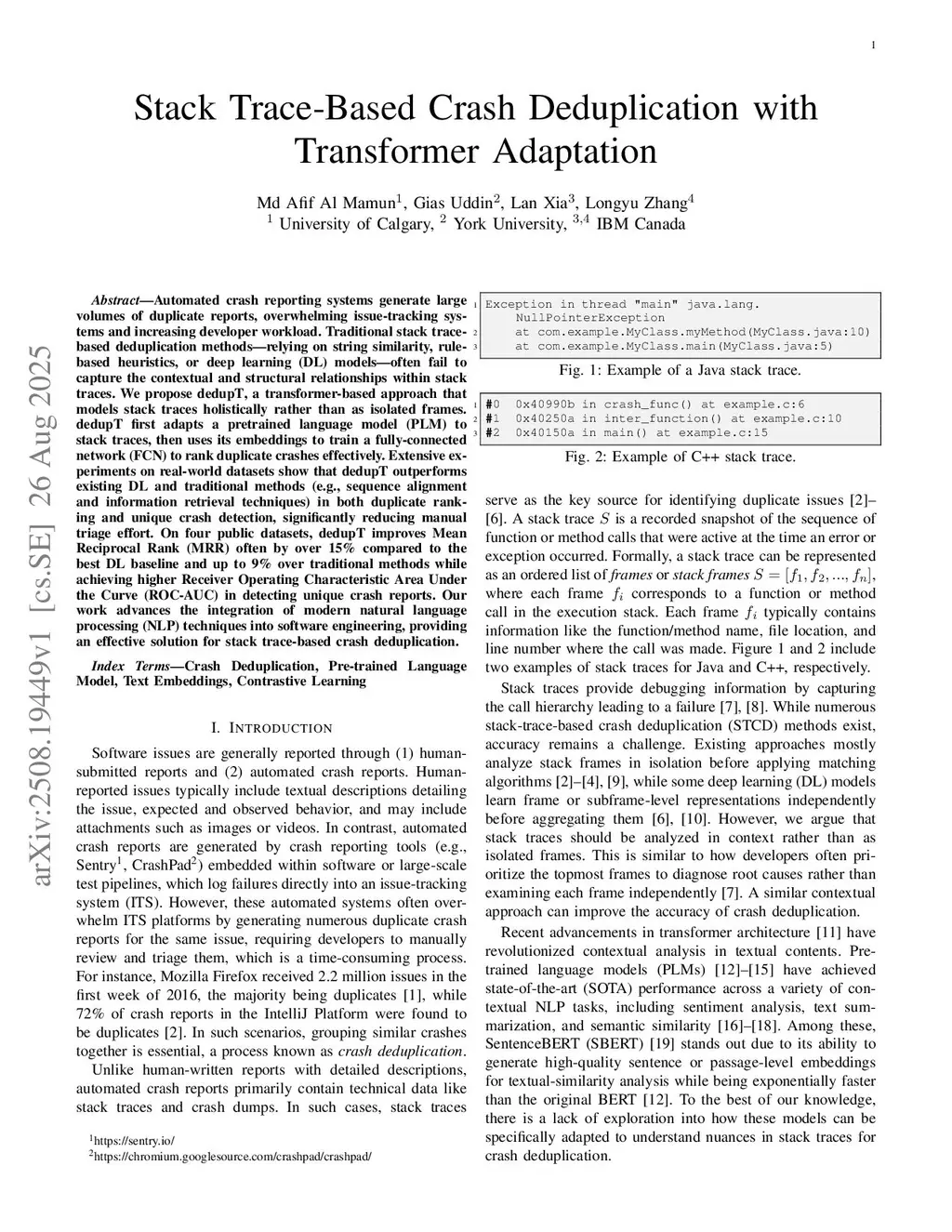 Stack Trace-Based Crash Deduplication with Transformer Adaptation