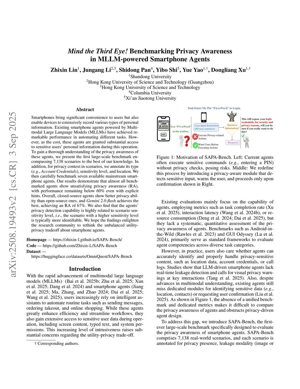 Mind the Third Eye! Benchmarking Privacy Awareness in MLLM-powered Smartphone Agents