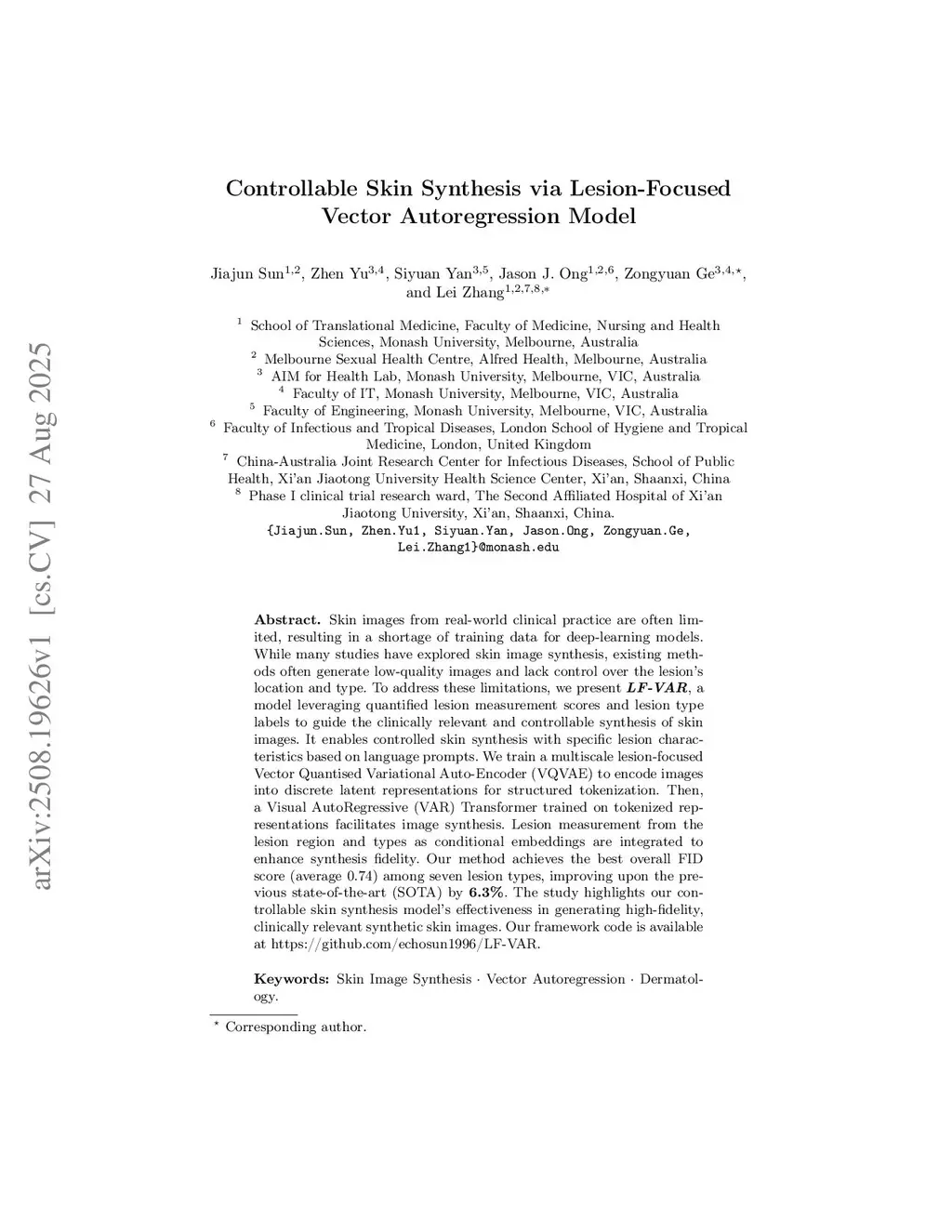 Controllable Skin Synthesis via Lesion-Focused Vector Autoregression Model