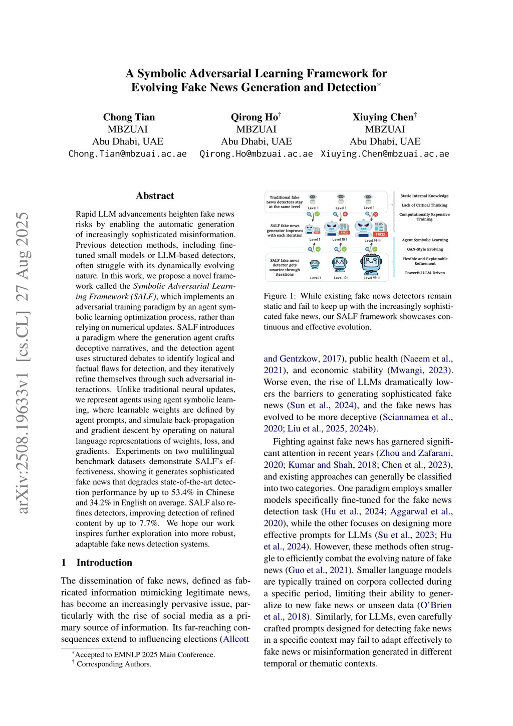 A Symbolic Adversarial Learning Framework for Evolving Fake News Generation and Detection