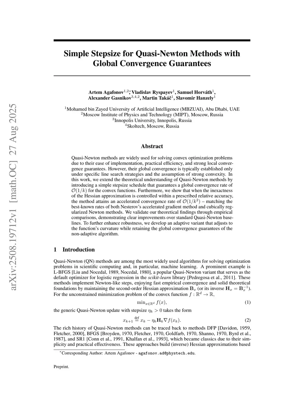 Simple Stepsize for Quasi-Newton Methods with Global Convergence Guarantees