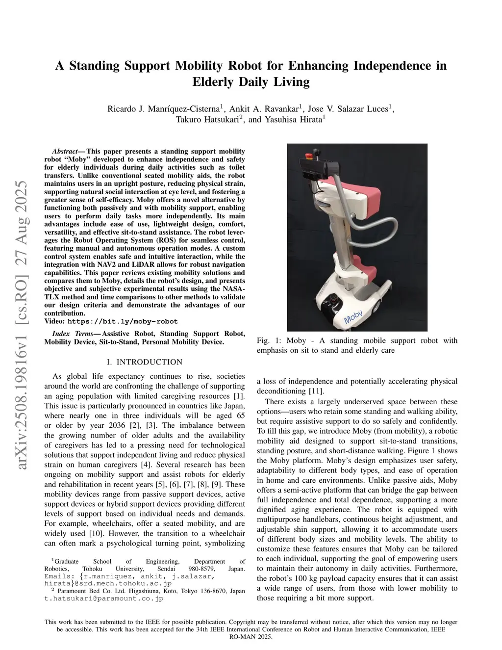A Standing Support Mobility Robot for Enhancing Independence in Elderly Daily Living