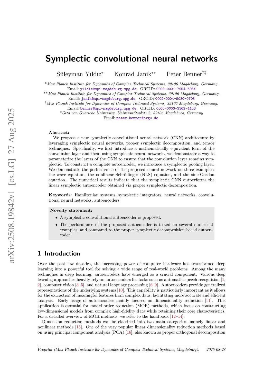 Symplectic convolutional neural networks