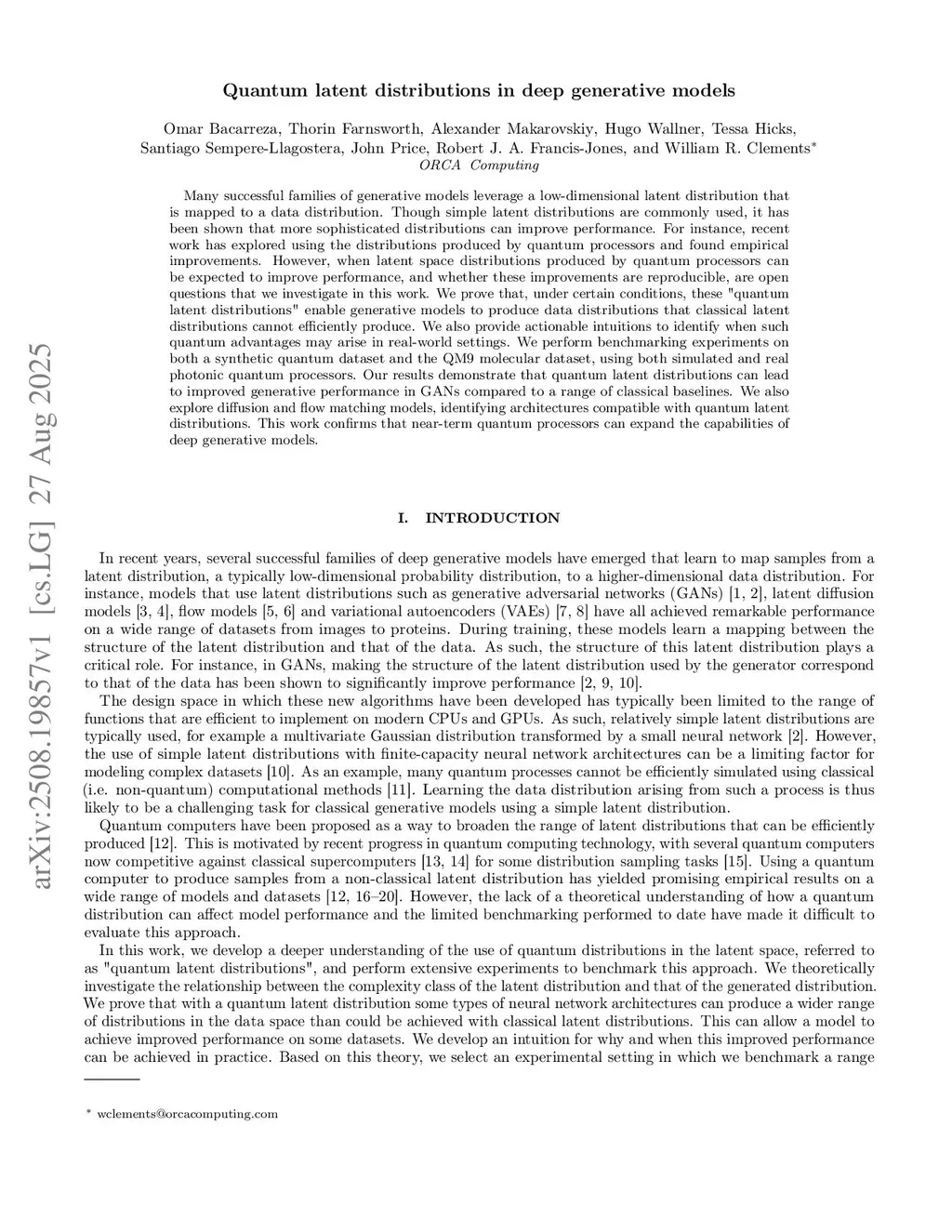 Quantum latent distributions in deep generative models