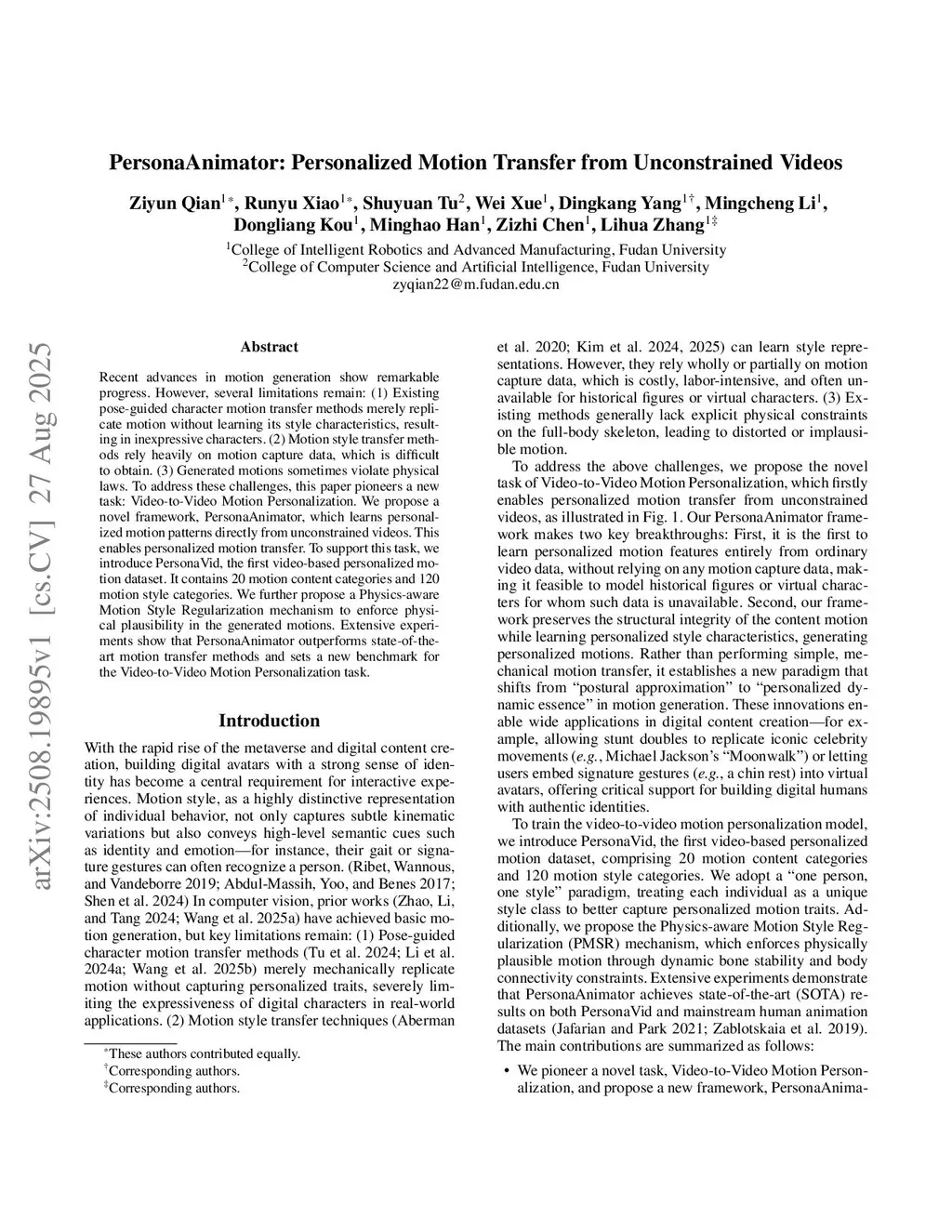 PersonaAnimator: Personalized Motion Transfer from Unconstrained Videos