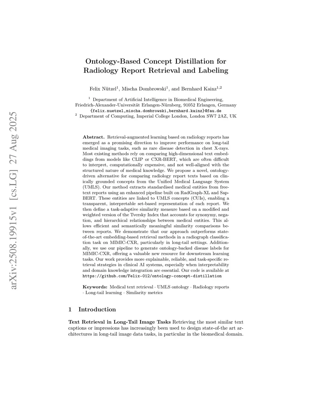 Ontology-Based Concept Distillation for Radiology Report Retrieval and Labeling