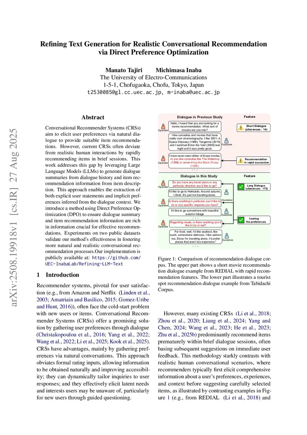 Refining Text Generation for Realistic Conversational Recommendation via Direct Preference Optimization