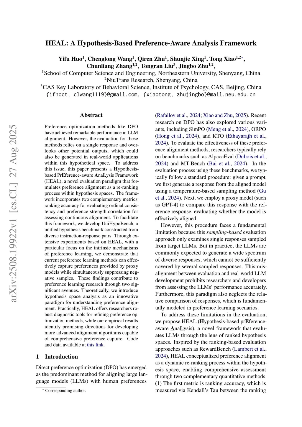 HEAL: A Hypothesis-Based Preference-Aware Analysis Framework
