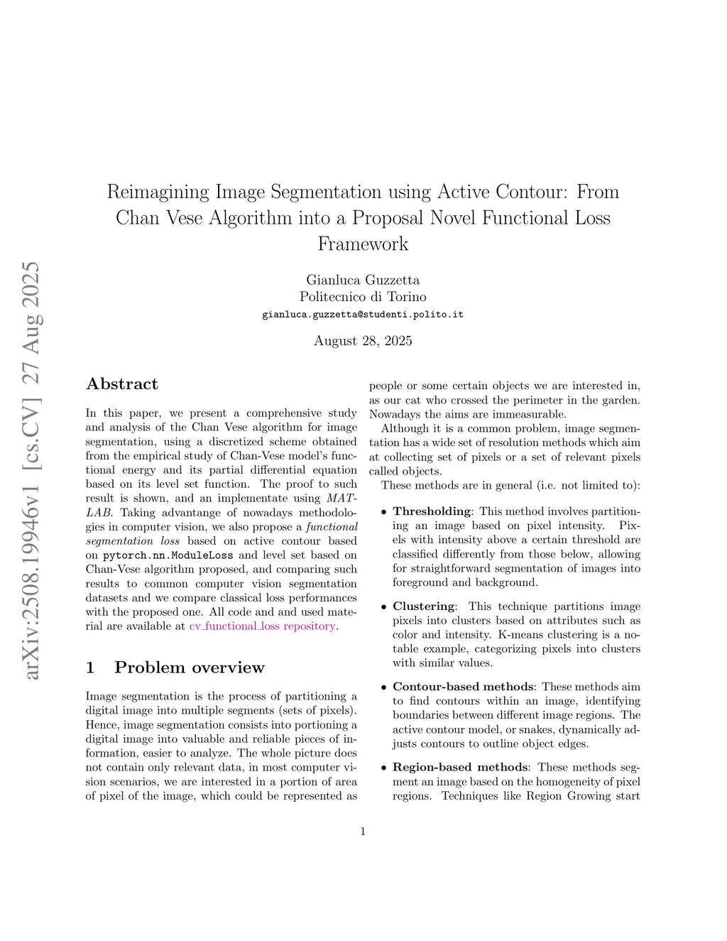 In this paper, we present a comprehensive study and analysis of the Chan-Vese algorithm for image segmentation. We employ a discretized scheme derived from the empirical study of the Chan-Vese model's functional energy and its partial differential equation based on its level set function. We provide a proof of the results and an implementation using MATLAB. Leveraging modern computer vision methodologies, we propose a functional segmentation loss based on active contours, utilizingthis http URLand a level set based on the Chan-Vese algorithm. We compare our results with common computer vision segmentation datasets and evaluate the performance of classical loss functions against our proposed method. All code and materials used are available atthis https URL.