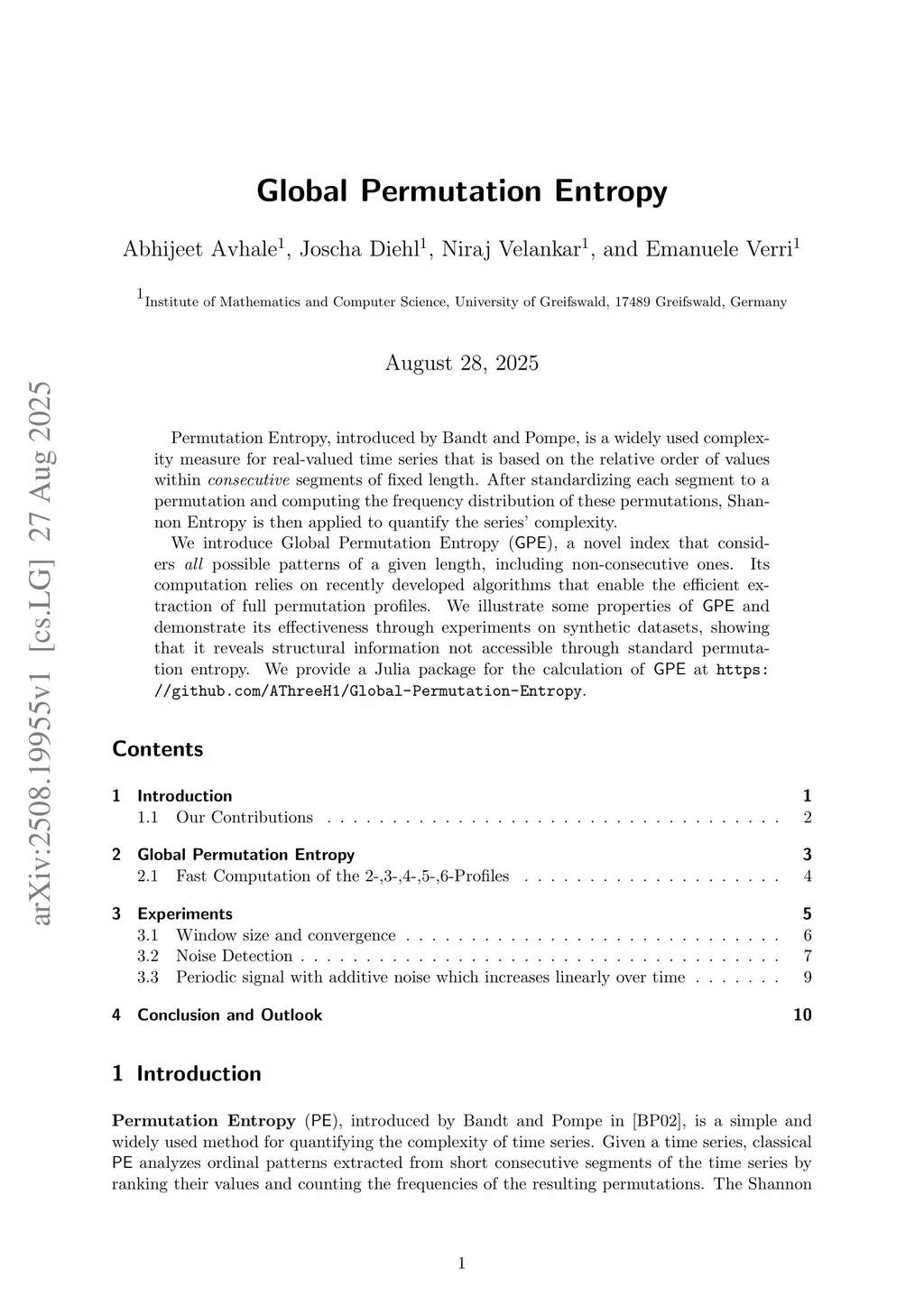 Permutation Entropy, introduced by Bandt and Pompe, is a widely used complexity measure for real-valued time series that is based on the relative order of values within consecutive segments of fixed length. After standardizing each segment to a permutation and computing the frequency distribution of these permutations, Shannon Entropy is then applied to quantify the series' complexity. We introduce Global Permutation Entropy (GPE), a novel index that considers all possible patterns of a given length, including non-consecutive ones. Its computation relies on recently developed algorithms that enable the efficient extraction of full permutation profiles. We illustrate some properties of GPE and demonstrate its effectiveness through experiments on synthetic datasets, showing that it reveals structural information not accessible through standard permutation entropy. We provide a Julia package for the calculation of GPE at `this https URL.