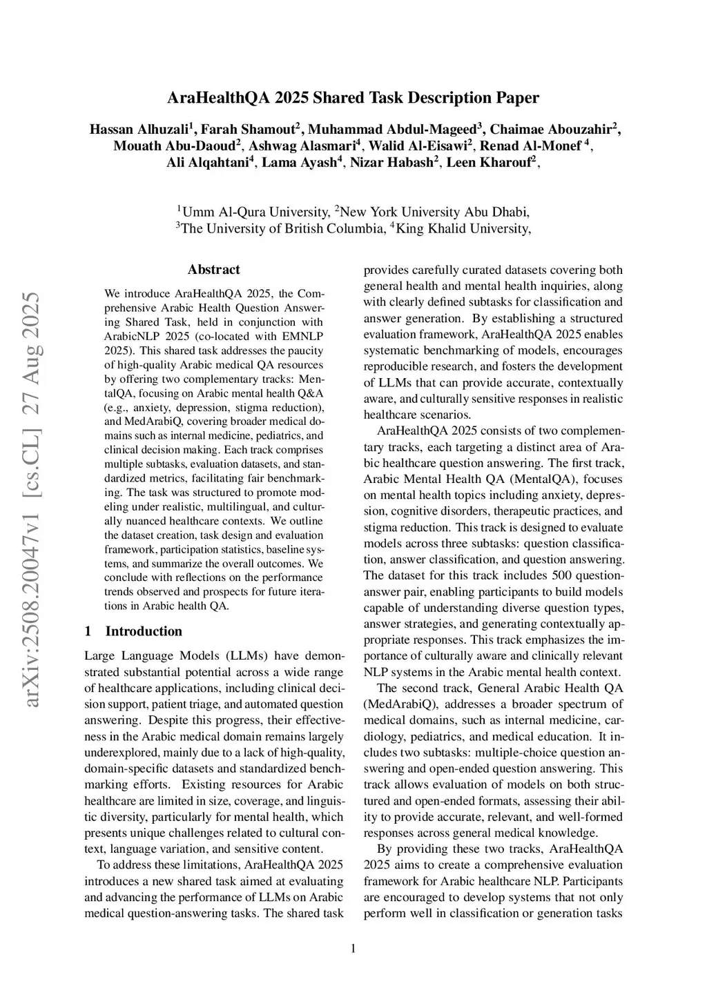 We introduce AraHealthQA 2025, the Comprehensive Arabic Health Question Answering Shared Task, held in conjunction with ArabicNLP 2025 (co-located with EMNLP 2025). This shared task addresses the paucity of high-quality Arabic medical QA resources by offering two complementary tracks: MentalQA, focusing on Arabic mental health Q&A (e.g., anxiety, depression, stigma reduction), and MedArabiQ, covering broader medical domains such as internal medicine, pediatrics, and clinical decision making. Each track comprises multiple subtasks, evaluation datasets, and standardized metrics, facilitating fair benchmarking. The task was structured to promote modeling under realistic, multilingual, and culturally nuanced healthcare contexts. We outline the dataset creation, task design and evaluation framework, participation statistics, baseline systems, and summarize the overall outcomes. We conclude with reflections on the performance trends observed and prospects for future iterations in Arabic health QA.