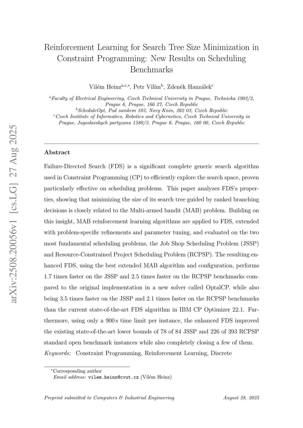 Reinforcement Learning for Search Tree Size Minimization in Constraint Programming: New Results on Scheduling Benchmarks