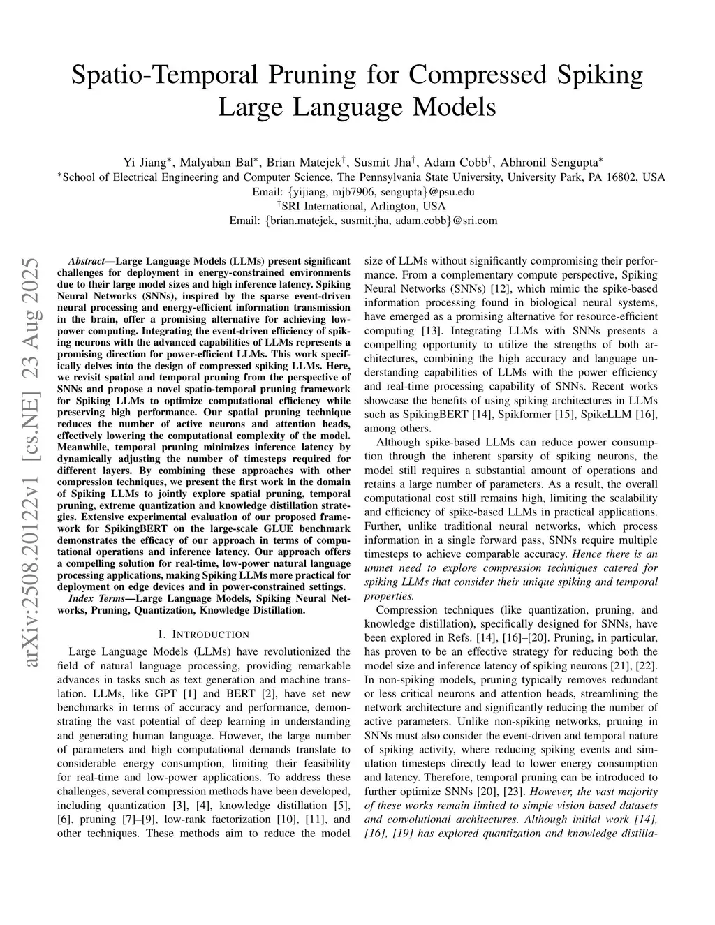 Spatio-Temporal Pruning for Compressed Spiking Large Language Models
