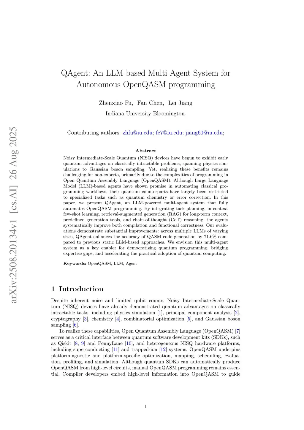 QAgent: An LLM-based Multi-Agent System for Autonomous OpenQASM programming