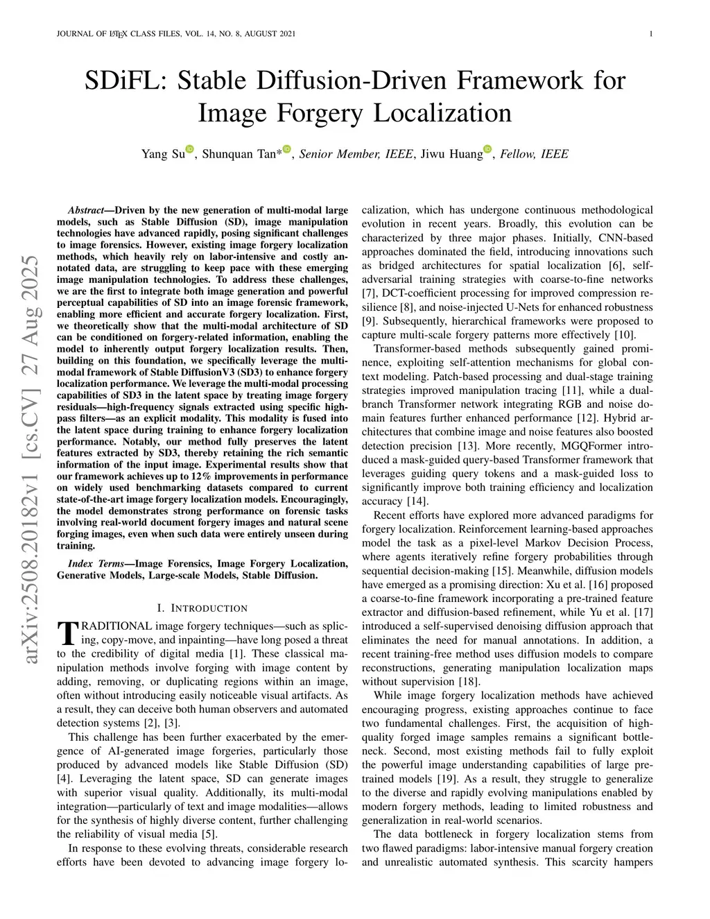 SDiFL: Stable Diffusion-Driven Framework for Image Forgery Localization