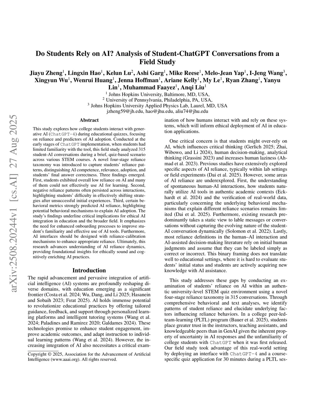 Do Students Rely on AI? Analysis of Student-ChatGPT Conversations from a Field Study