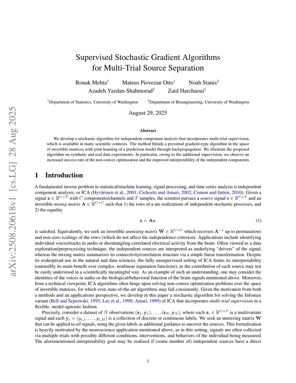 Supervised Stochastic Gradient Algorithms for Multi-Trial Source Separation